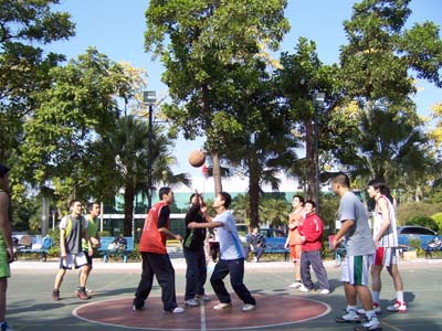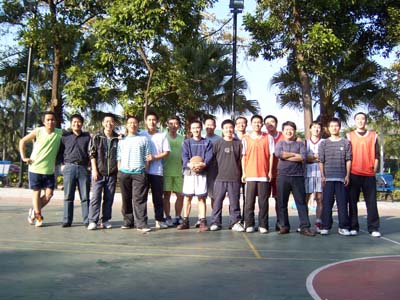 当天下午,天高气爽,阳光明媚,一声哨响,比赛正式开始。头一节比较沉闷,双方可能因为没有活动开,所以打得都比较收敛,犯规也不多。第二节开始后,能源所队有意识的加强了防守,有效地限制了对方的进攻,内线的铜墙铁壁使篮板有了很好的保障。上半场结束时,能源所队以34:19领先。总的来说,队员的表现还是比较中规中距。 下半场开始后,能源队后卫加强了快攻和传球,全线引发了我队的进攻火力,进攻变得流畅而华丽,场边喝彩不断。到第四节,被压制了三节的电科院队终于找回手感,全面爆发,突破,抢断,远投,内线强打,进攻方式多样,命中率也很高,到比赛结束前1分钟,他们追回了近20分,仅以51:53落后。终于,在第四节结束的最后几秒,对方进了一个关键中投,53:53。 电科院队意犹未尽,又跟我队接着打了加时,最终能源所队通过艰苦鏖战,以63:61获得胜利。 这场比赛体现了研究所篮球队的凝聚力和战斗力,也增进了与外面公司的交流,提高了能源所的知名度,而且在元月的第一天举办这次活动,更为能源所研究生积极向上的精神面貌加上了最青春的注脚。