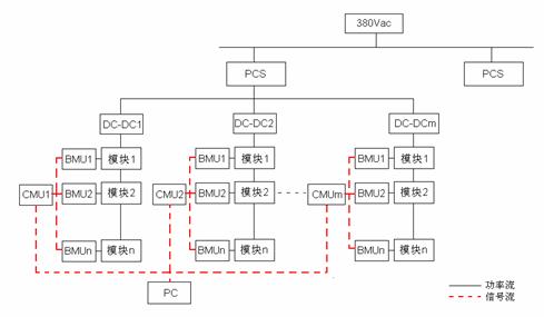 技术背景 大规模储电技术是智能电网、新能源发电及并网、电力负荷移峰填谷的关键技术。锂离子电池由于其具有能量密度高、自放电率低、放电电压平稳、循环寿命长等优点在多个领域得到了广泛的应用,在大规模储电系统中的应用锂电池将成为技术发展的必然趋势。如何确保锂离子储能系统(Battery Energy Storage System, BESS)的高效、安全应用,必须对系统的各个组成部分进行集成和优化,并加以合理有效的管理和控制。 技术原理 大规模储电电池体系的直流母线电压通常在300V~900V,需要由上百个单体电池串并联组成,通常将单体电池先制作成标准的电池模块,然后多个模块串联扩展至所需的额定电压。