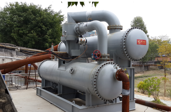 图片名称:300kW径向轴流式地热发电模块化机组 2. 热水型两级溴化锂吸收式制冷机组 可在65℃以上的热水驱动下产生11℃以下空调冷冻水,制冷系数达到0.4。