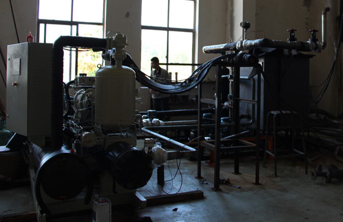 图片名称:热水型两级溴化锂吸收式制冷机 3. 中低温热源热泵蒸汽机组 研发团队已研制了120kW热泵蒸汽机组样机,在热源温度为60℃蒸汽温度为110℃的条件下,机组制热量达到120kW,蒸汽产量达到150kg/h,制热性能系数达到3。
