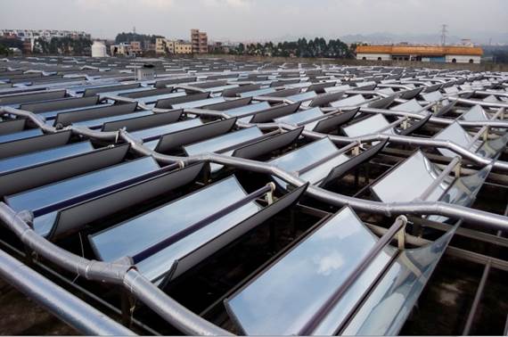 图片名称:地热综合梯级利用示意图 5.太阳能槽式集热器 设计了适用于不同用途的槽式太阳能集热器,其技术性能达到国内领先水平,市场前景广阔。