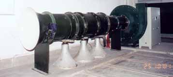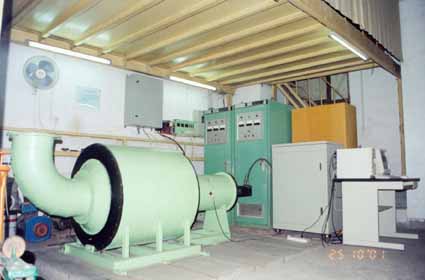 往复流动透平试验台由7.5kw原动机、电磁调速异步电动机、圆柱齿轮减速机、活塞、气缸以及测试系统组成。其中气缸有0.7m内径和1m内径两种。 气流周期为2s,活塞行程:0.15~0.9m。 这是一套利用气室内的水柱振荡形成往复式气流,从而带动透平发电来研究海洋波浪发电装置的试验平台。 本试验台测量的主要参数有转速、气压、电压、电流和周期。测量系统硬件主要有信号取样、转换放大、计算机采集等。 采集计算机软件用C语言编制,结构化程序设计,设多个子程序模块:标定、采集、实时屏幕绘图、计算、存盘、打印结果。采集的数据按数据库方式管理,方便处理和调用。 本试验台目前只能做正弦波下的性能测试。今后将改用计算机控制的伺服电机驱动,届时可以做非规则波下的性能测试。