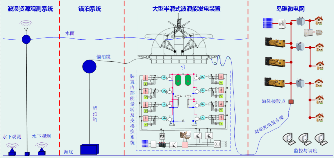 开展技术集成,建成可适应多种海洋动力环境、气候环境的波浪能发电装置,积极开展实海况试验,形成完备的波浪能开发、投放、运行技术体系。