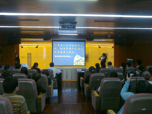 代表广州能源所参赛的讲解员分别是陈雪芳和王立国,他们演讲主题分别是“自然物语——拯救我们的星球”和“波浪能利用——看世界各国如何点水成金”。他们用深入浅出的语言,向评委和观众讲解了环保节能和波浪能的专业知识,受到了评委和观众的好评。经过激烈角逐,王立国顺利进入决赛。