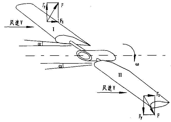 |    随着社会的发展,能源需求量日益剧增,化石能源枯竭已是人类不得不面对的问题。可再生能源及新能源技术的开发利用势在必行,风力发电作为一种新能源技术,势必将在未来的能源利用中占据重要的一席之地。 一、风力机的工作原理 风力发电是利用风力带动风力机的叶片旋转,再透过增速机将旋转的速度提升来促使发电机发电。风力机的工作原理:空气流经风轮叶片产生升力或阻力,推动叶片转动,将风能转化为机械能。根据风力机的工作原理,风力机主要分为升力型和阻力型,下面重点介绍一下水平轴升力型和垂直轴阻力型风机的基本原理。  升力型风力机的工作原理:图(1)所示是水平轴风力机的机头部分。风轮主要由两个螺旋桨式的叶片组成。风从左方吹来.叶片产生的升力Fy和阻力Fx。阻力是风对风轮的正面压力,由风力机的塔架承受;升力是推动风轮旋转的动力。