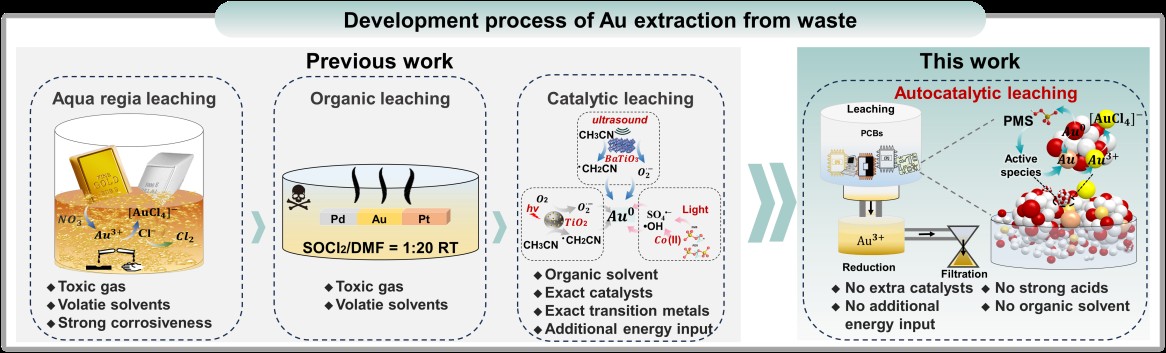 该研究深入揭示了自催化生成的活性物质在金属浸出中的作用,为电子废弃物中贵金属的资源循环利用提供了一种更可持续、更高效的回收方法,有望推动贵金属回收行业向绿色、环保方向发展。