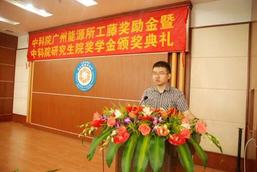毕业典礼由党政人教处处长余颖琳主持。赵黛青宣读了《关于公布2011—2012年度中国科学院研究生院奖学金暨广州能源研究所工藤基金评审结果的通知》,本届奖学金获得者共40名,其中中科院研究生院奖学金暨工藤奖学金22名,工藤青年奖18名。获奖代表王屹和骆超分别代表学生和青年职工谈及了自身在学习、工作中的体会,并表达了对研究所、导师、同事和同学们的感谢。