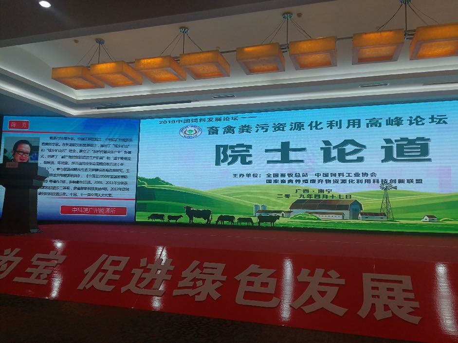 2019年4月17日全国畜禽粪污资源化利用高峰论坛在广西南宁举行,中国工程院院士、广州能源所研究员陈勇应邀出席并作‘‘创建代谢共生产业园,助力乡村振兴战略’’的主旨报告。农业部副部长于康震,广西自治区副主席方春明,中国工程院印遇龙院士、李德发院士、张福锁院士等1500人参会。