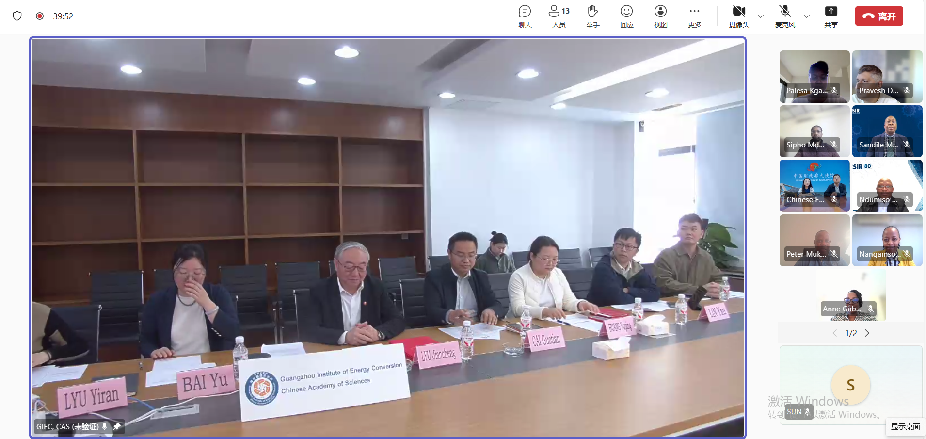 3月9日,广州能源所与南非科学与工业研究委员会(CSIR)举行线上签约仪式,正式签署合作备忘录。广州能源所所长吕建成、CSIR智慧社会部门负责人桑迪莱·马林加博士(Dr. Sandile Malinga)代表双方签约,中国驻南非大使馆工作人员参加签约仪式。